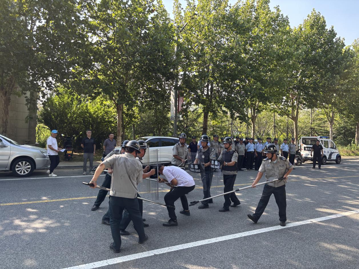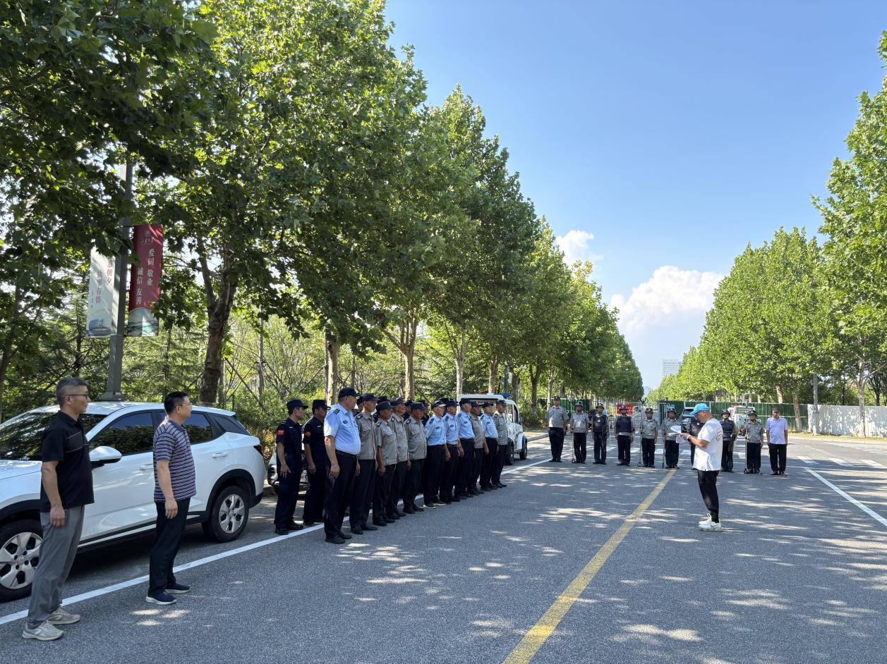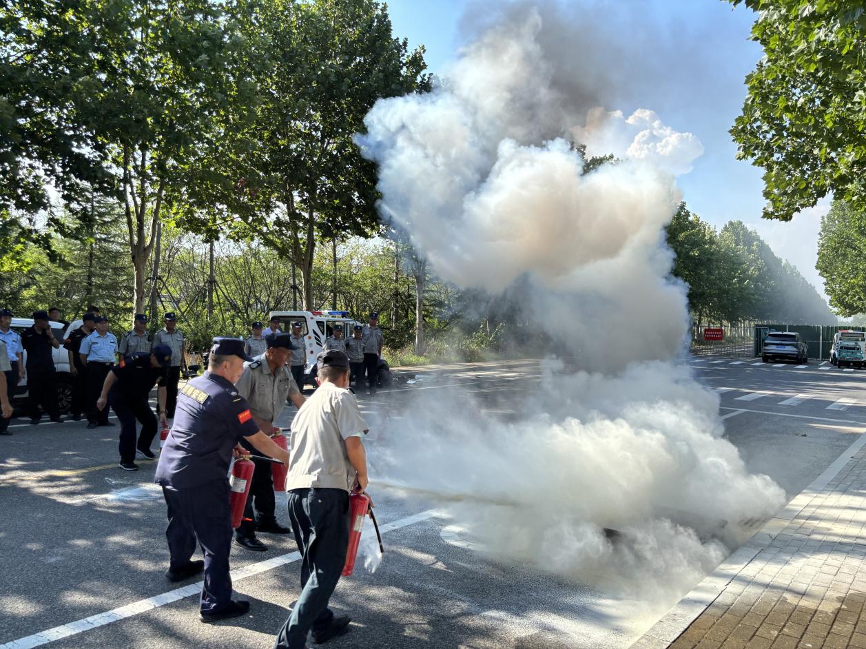 为全面提升校园安全保障能力,以最佳状态迎接新学期师生返校及2025级新生报到,8月21日下午,党工委保卫部组织开展安保队伍与消防志愿队伍联合演练活动。校区副校长兼党工委保卫部部长周加强、党工委保卫部副部长金鑫现场观摩指导,五十余名安保人员及消防志愿者参与实战演练。